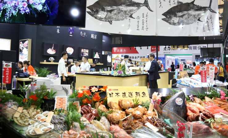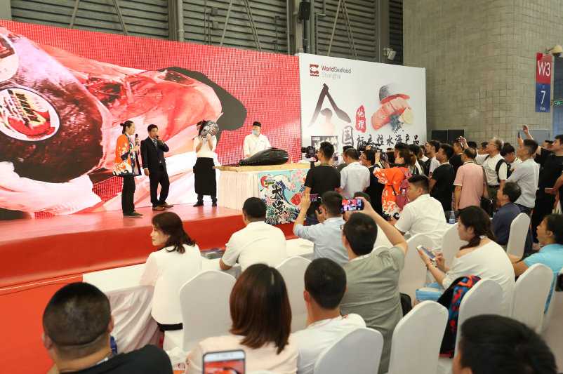 本次會(huì)展,上海大菱不僅展示有來自全球名產(chǎn)地的冰鮮魚、人氣凍品,如冰鮮藍(lán)鰭金槍魚、金目鯛、大竹莢魚、鰤?mèng)~、北海道扇貝、貝柱等,還有總公司大洋世家遠(yuǎn)洋自捕的產(chǎn)品及精加工產(chǎn)品,如阿根廷紅蝦、魷魚、厄瓜多爾白蝦、金槍魚罐頭等。金槍魚系列產(chǎn)品和日本冰鮮魚,一直以來是上海大菱的核心品類,本次對(duì)鮮魚的展示,突破以往拼裝展示慣例,而采用原包裝整箱展出,重新詮釋“鮮魚市場(chǎng)”,讓目標(biāo)客戶能更加直觀的感受到我們供應(yīng)的產(chǎn)品形態(tài)和包裝規(guī)格,博得了觀眾高度夸贊,紛紛表示“大洋世家魚市場(chǎng),很有感覺!”展位現(xiàn)場(chǎng),通過人氣冰鮮魚和凍品的多番試吃互動(dòng),將人氣一波波引爆。